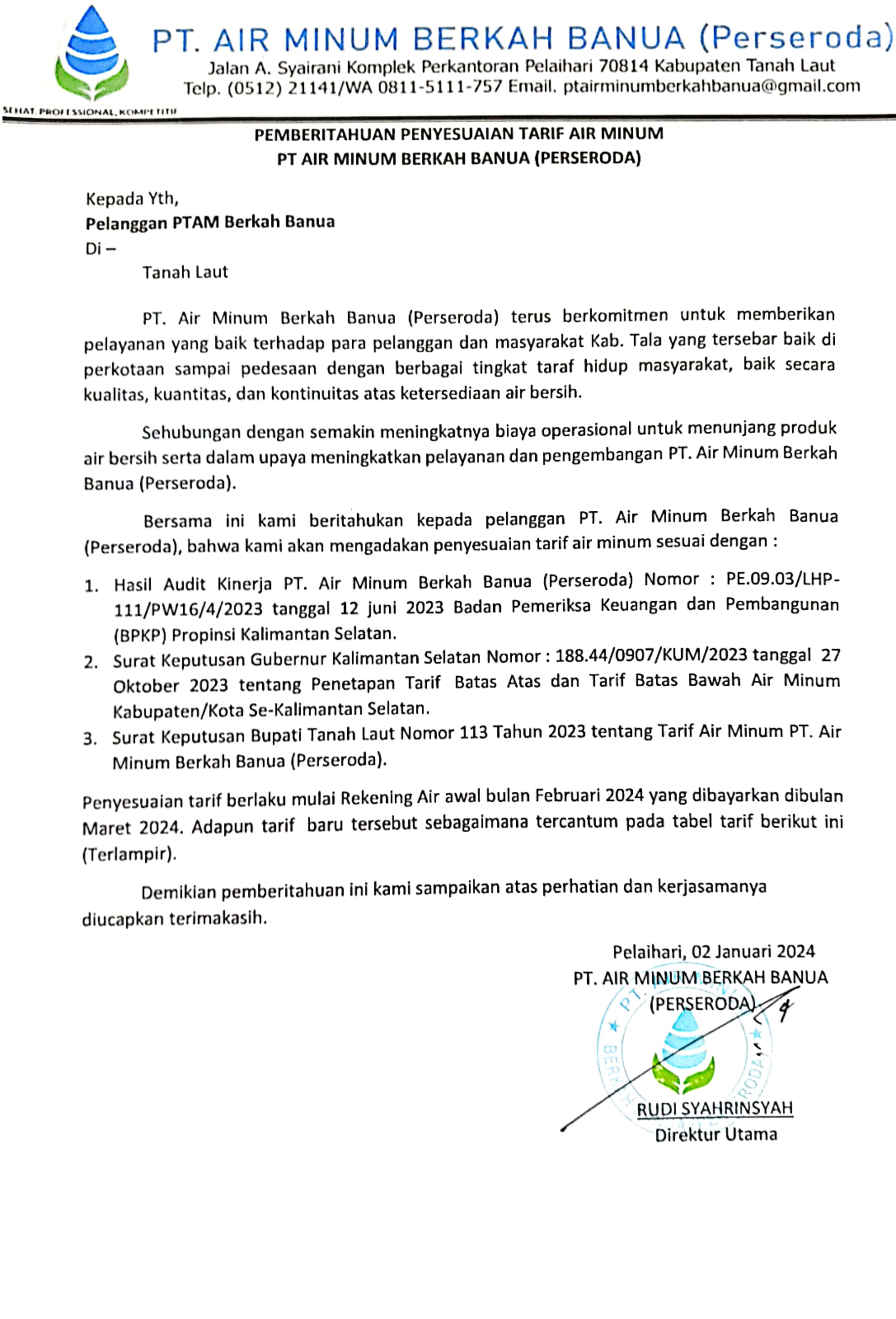 PROFIL PT AIR MINUM BERKAH BANUA