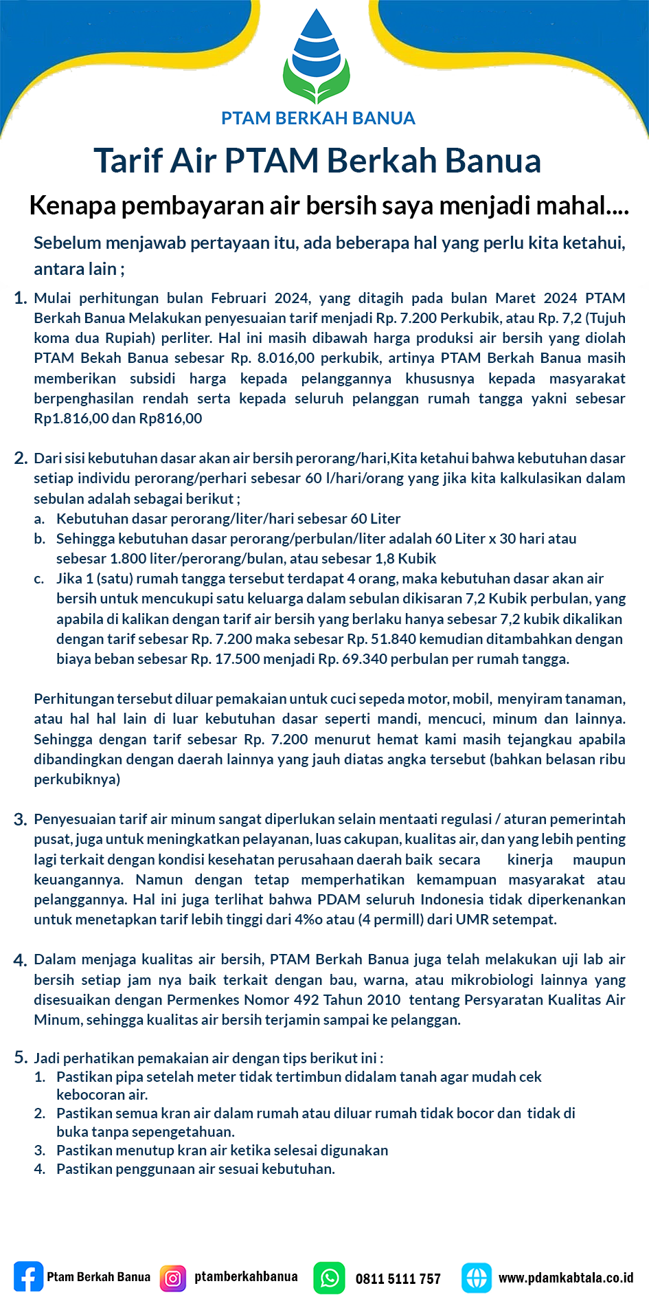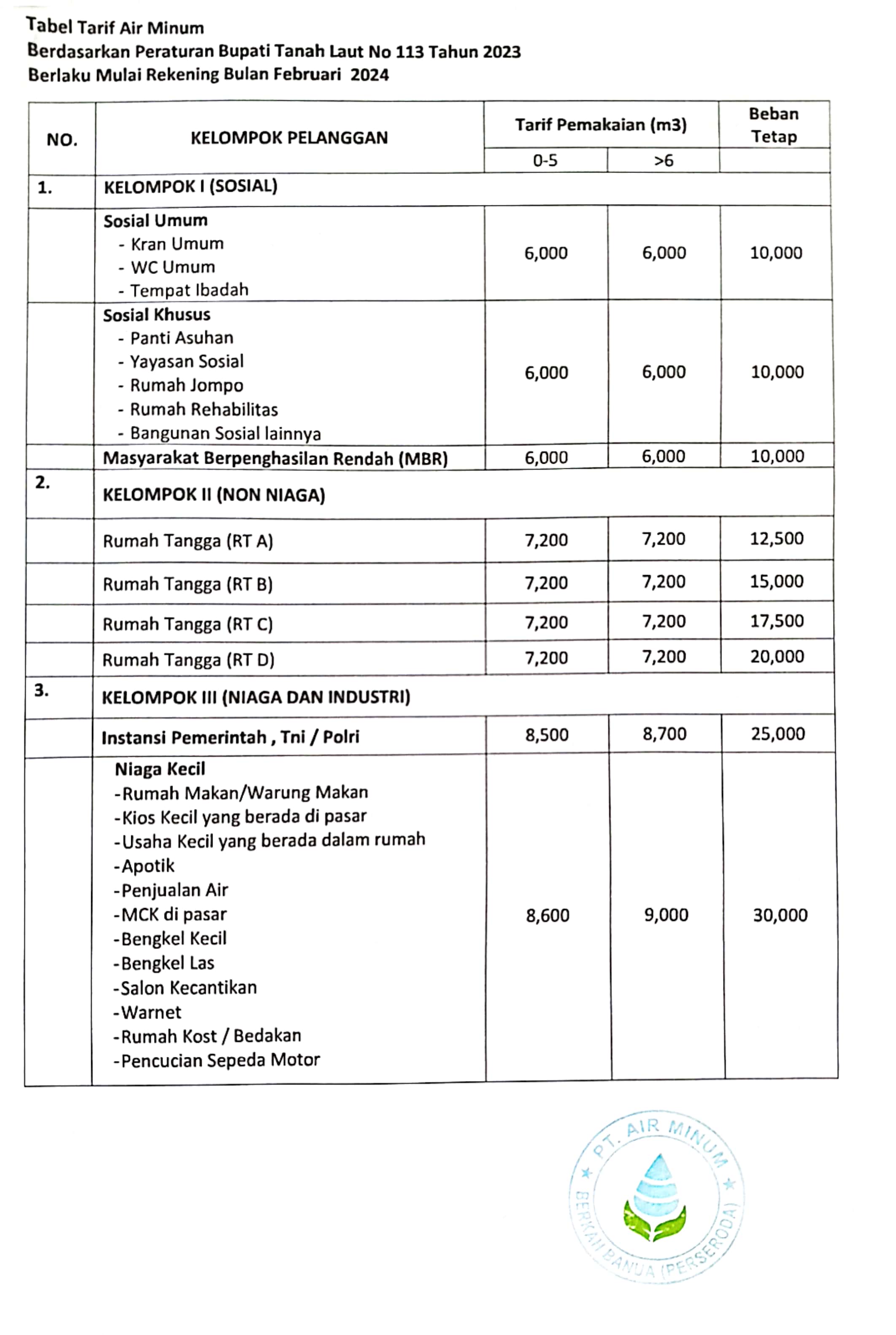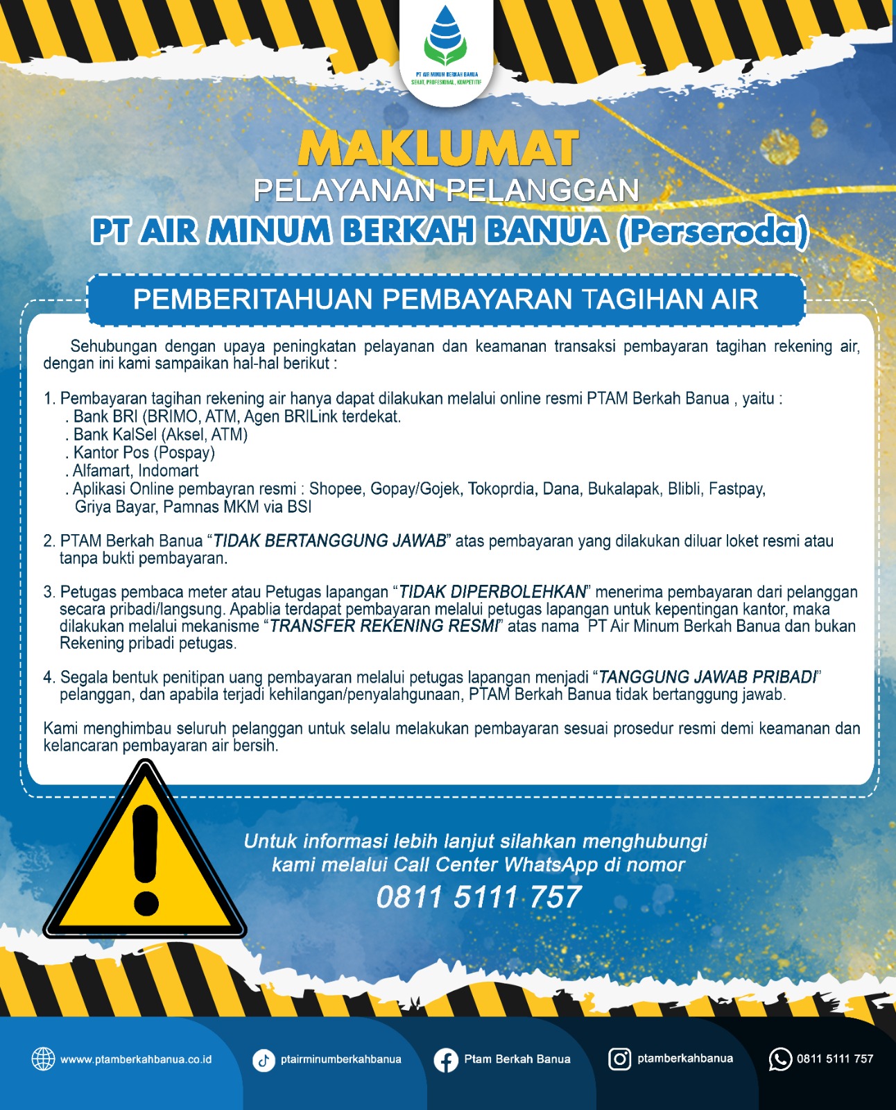 INFORMASI PELANGGAN PTAM BERKAH BANUA (PDAM)